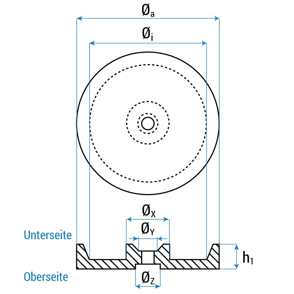 | ØZ = A felső oldalon lévő mélyedés átmérője | 32 mm |